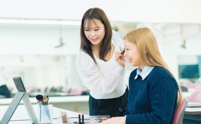 化粧の歴史文化や心理学、社会学や身体美、化粧品科学などを学び、メイクアップの技術を実践的に修得します。さらに、ネイルやエステ、ビューティビジネスの授業を通して、化粧・美容の世界で活躍する能力を養います。
