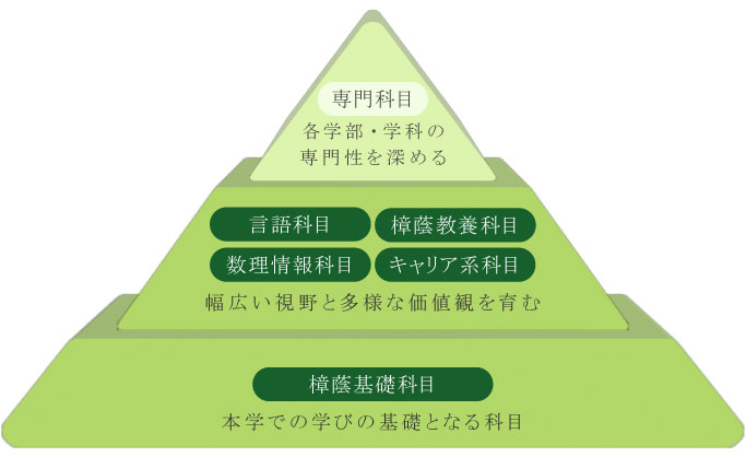 学士課程基幹教育科目は、各学部・学科の専門性を深めるための基盤として、本学での学びの基礎となる科目と、幅広い視野と多様な価値観を育む科目を展開しています。