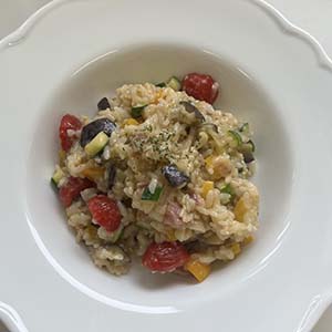 今回考案したレシピは、夏野菜のキーマカレー、ナシゴレン、リゾット(トマトリゾット・チーズリゾット)の3種。試食会には、お米を扱う業界の関係者や一般の方を招待して、学生が考案したレシピを試食してもらいます。