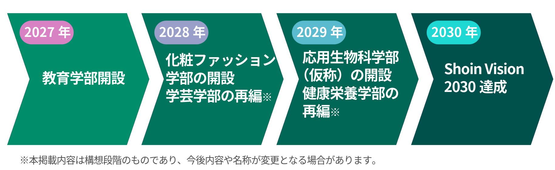 今回の改革は、Shoin Vision 2030 が示す方向性のもと、分野ごとの専門性を高めながら有機的に結び付け、「感性」と「科学」を融合し、全学部が「社会に貢献する自律した女性」というゴールに向かって連携することを目的としています。