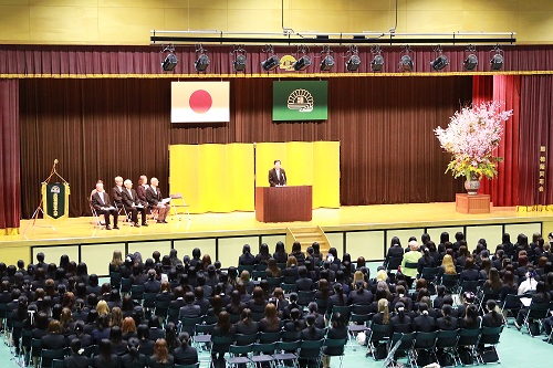 2026.04.01 お知らせ 令和8年度入学式を挙行しました 4月1日(水)本学体育館(100年会館)にて令和8年度入学式を挙行しました。 式典では、小森道彦学長が式辞を、森眞太郎理事長が祝辞を述べられ、入学生代表が力強い宣誓を行いました。 また、入学式終了後には保証人様向け説明会も実施いたしました。 あいにくの雨模様となりましたが、新入生の皆さんの晴れやかな笑顔あふれる一日となりました。 新入生の皆さん、ご入学おめでとうございます! これからの学生生活が楽しく充実したものになるよう、教職員一同、サポートいたします。 一覧へ戻る